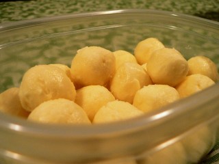 Mix the ingredients together and it will be a sticky mass due to the butter. Let it sit in the fridge for some times and then form balls. Either you serve them like that, or you roll them in coconut flakes. I heated some chocolate and coated them, sprinkling flakes over it to make them look nice.