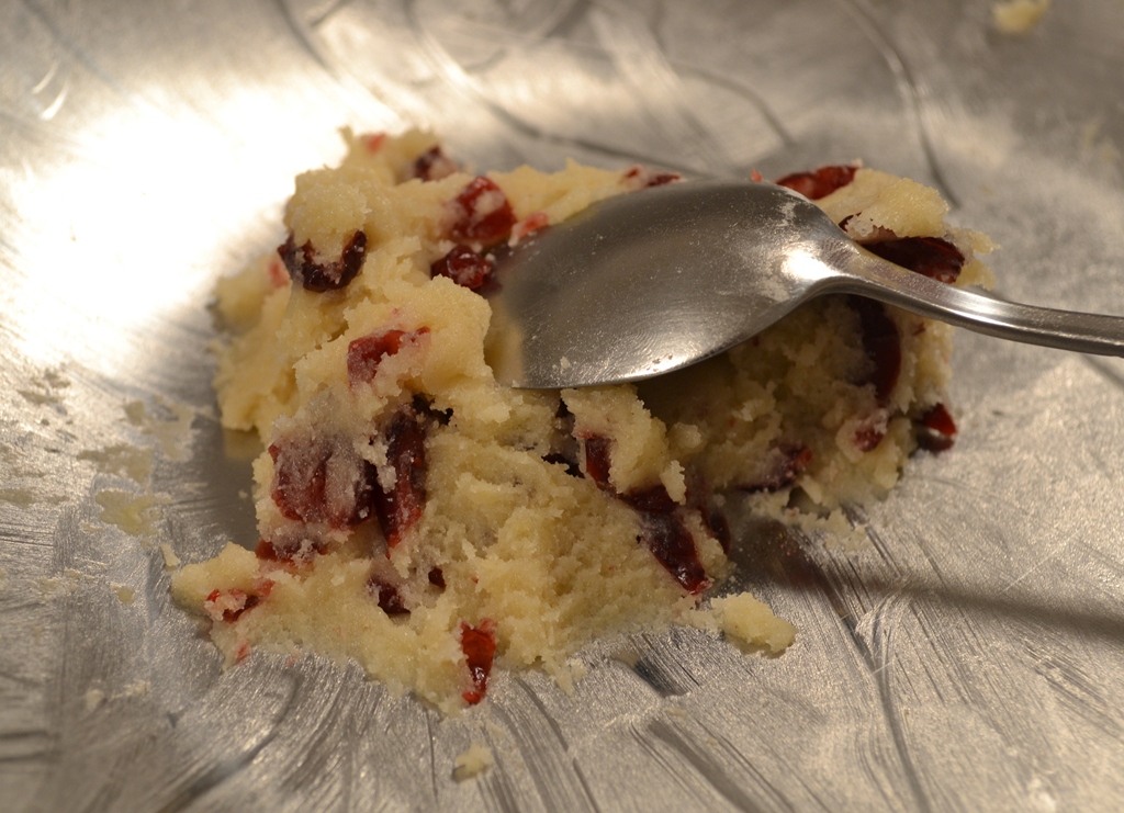 Tip 3: Cranberries and cherries tend to be a bit bigger than you average raisin. I would suggest you chop them somewhat so that you don’t have monster fruit in you little cookies.