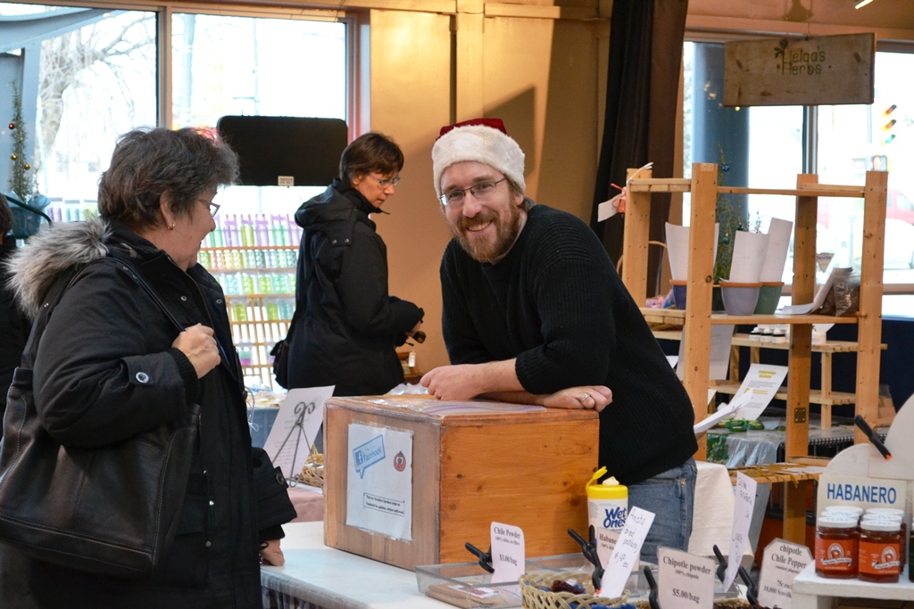 While there are many vendors who sell baked goods (and all look fantastic) there is one stop I have to make for bread. The bread guy: I don’t even know the name of the guy, that’s why you get the picture to go with it. He’s located in the middle isle and you will see his breads out. The other day I bought a potato bread which is nice and fluffy but has a good crust. I also had a Pumpkin & black pepper bread which was really flavourful. He also has rolls, for example lentil rolls. Those really yummy when you heat them and put butter on. Good for road trips.