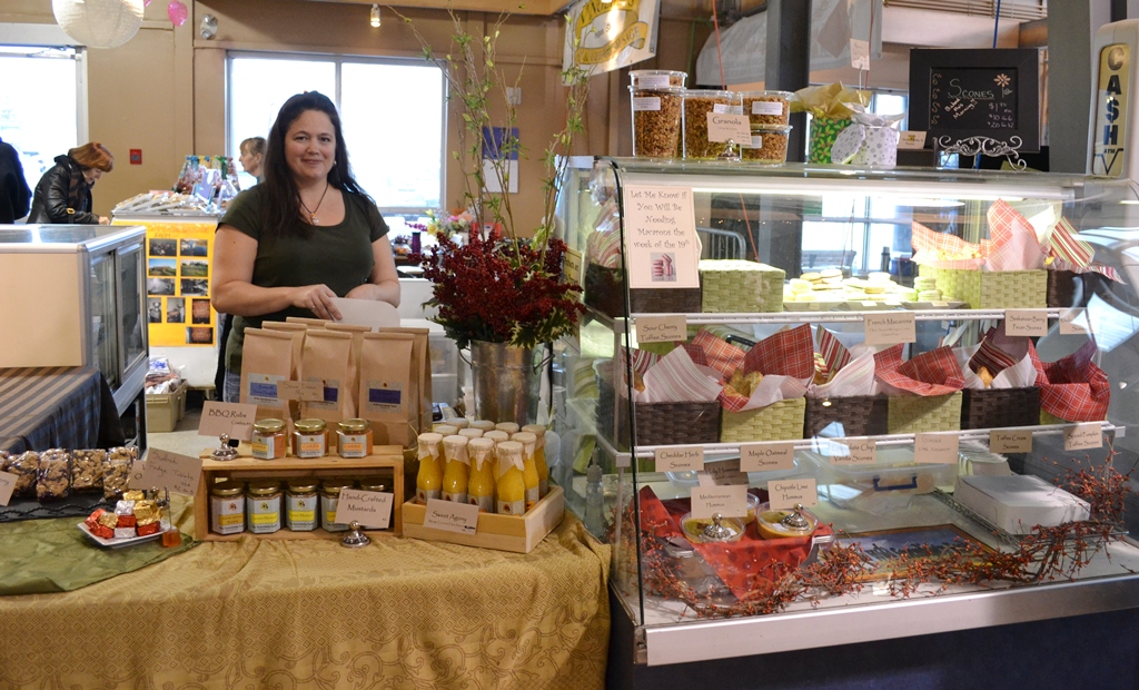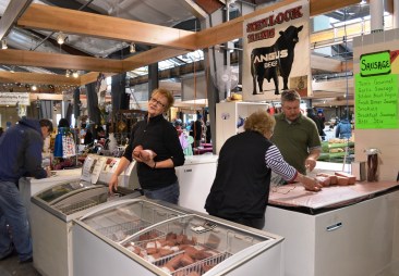 During summer months you will find indoor and outdoor vendors. Outdoor vendors will be several framers with they fresh produce, there is a fruit truck from BC, herbs and spices, a honey stand and all sorts of things. The indoor vendors are the regular ones, bakers, meat producers, fish, a winery, knitting, aprons, wood work and so on.