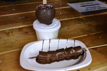 To top of the evening we got something with chocolate. There was a booth with chocolate fountains, which looked really nice. They had fruit cups with chocolate, and waffle cones with chocolate and fruits, fruit kebabs with chocolate and chocolate covered apples. So, we went for the apple and banana, good choice too.