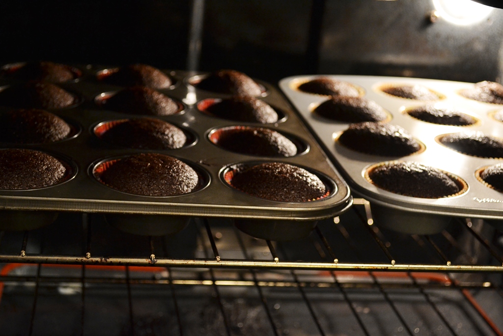 Fill your liners about half full so that it won’t spill over and bake at 180°C for about 25 min or until the skewer comes out clean. Let it cool on a wire rack.