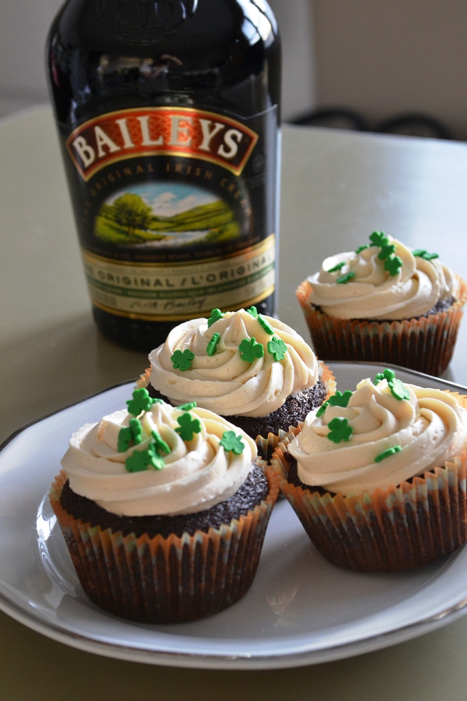 So, in honour of St. Patrick’s Day I had to make some sort of dessert. (I would love to make some Irish Stew as well but no time this weekend.) The dessert had to include some Guinness, it’s the Irish thing to do. Fortunately, a friend pinned this recipe on Pinterest and made it herself. Since she liked it so much and it is full of Irish alcohol I had to do it. *g*