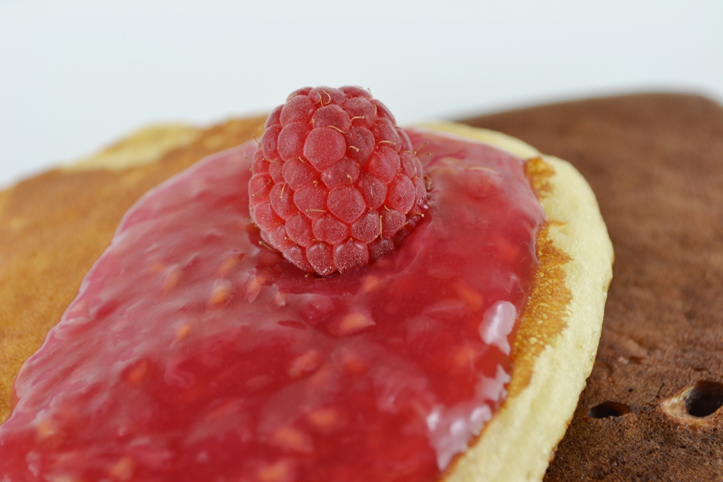 Heat your frying pan, preferably one with a low edge and grease it with oil (not butter). Pour the batter onto the hot pan, using as much as you like. Let it cook until bubbles form, then flip the pancake over. Make sure both sides are nice and brown. Serve hot with maple syrup, chocolate syrup, jam, whipping cream, whatever you like.