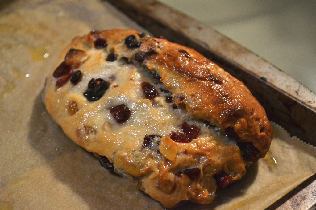 It is mid-November and that means Christmas is not too far away. Some Germany Christmas items one will find during December need to be prepared somewhat in advance because their ingredients need to sit to develop the right amount of flavour. One of these items would be the Christmas Stollen, a yeast cake with dried fruits and nuts. Great way to share with friends and family is a mini version.