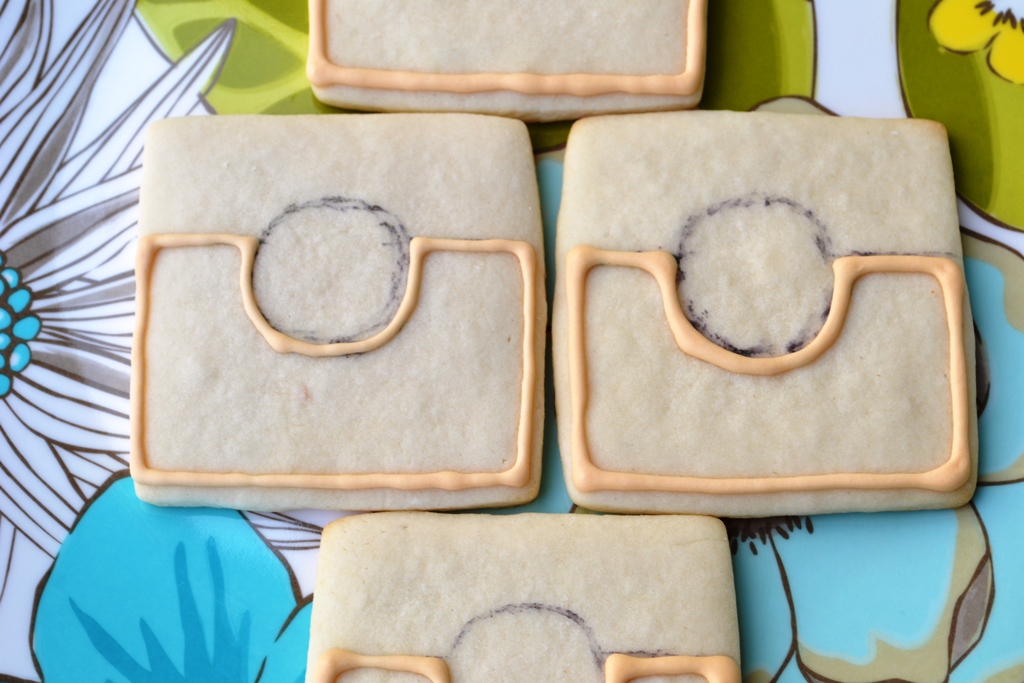 After a day of drying I added the details: the corner lens, the Instagram colours on the left side and the white swoosh for the lens in the middle. What I noticed was that red, yellow, green and blue had different consistency while drawing those short lines. I did not expect for blue to be runnier than red. Also, there were some bubbles in the lines, especially with green. On the other hand, I am not royal icing a lot of cookies so if you are more experienced you will have less problems with that. Sorry that there are no more in between pictures. It simply slipped my mind.