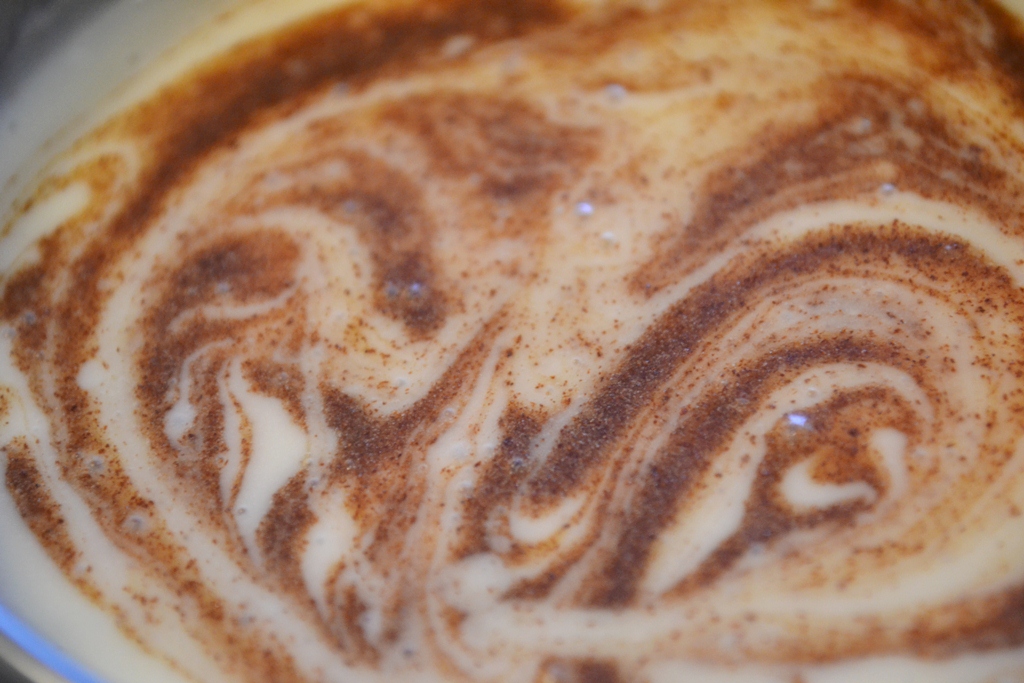 In a small bowl, combine 1 tsp. cinnamon with the rest of the brown sugar, then add 1/2 tbsp. melted butter as well as  1/2 tbsp. maple syrup and 1 tsp. heavy cream. Combine with a wire whisk and swirl it over the cheese cake batter. Using a knife or fork go through the batter to distribute the syrup, making sure not to combine it too much.