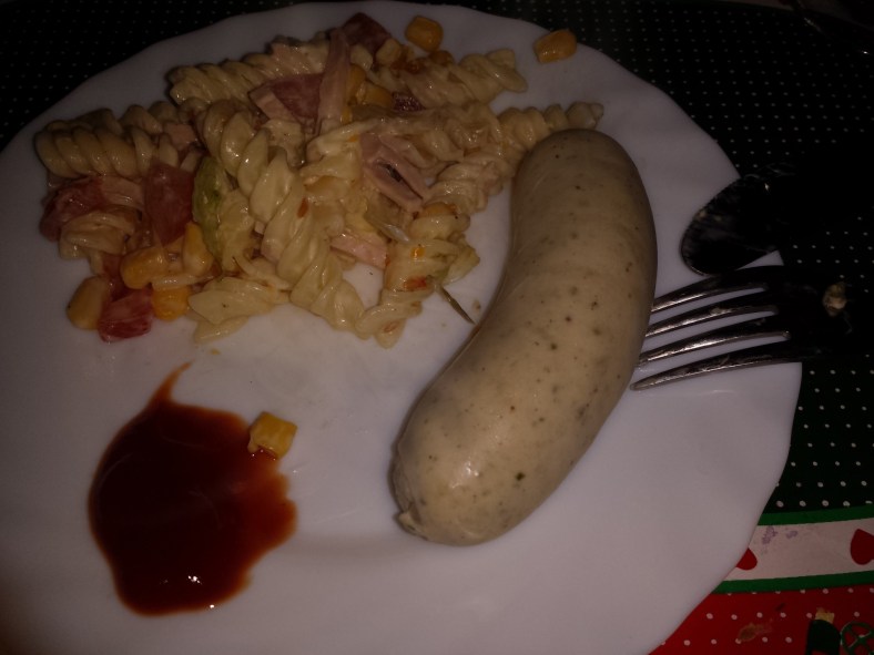 White sausage & noodle salad