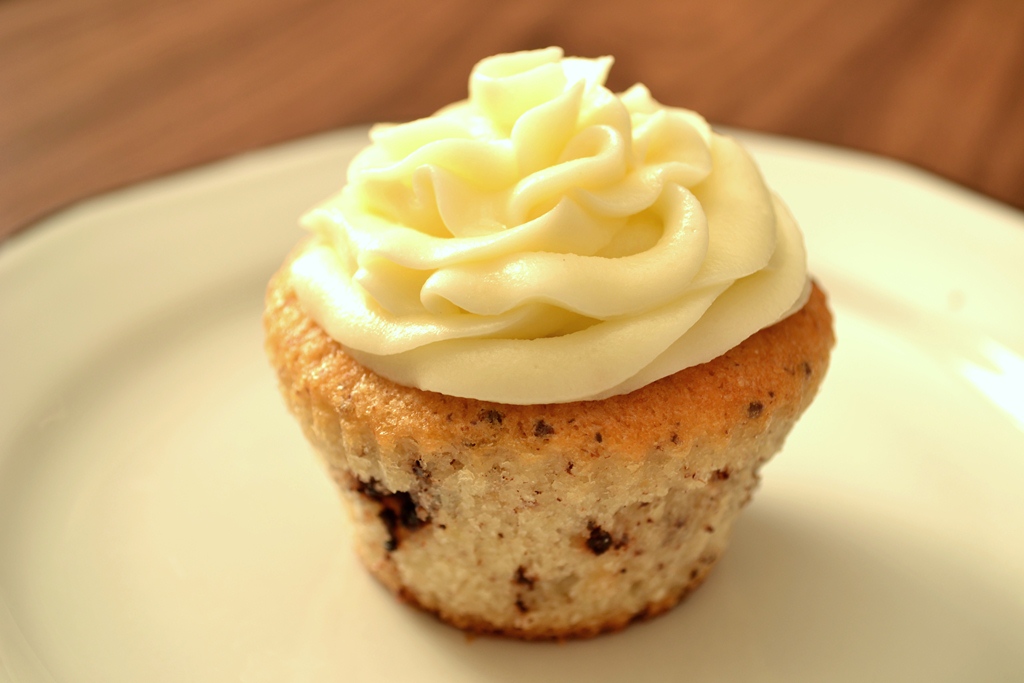 I think I said it before, most of my backing happens because of some sort of gather, like a potluck, or because I have something left over and need to use it. Last Wednesday was a potluck and I had something left over from previously baking. As a result these lovely cupcakes were created and I changed the recipe a bit. Cutting cupcakes in half just seemed bit weird to me.